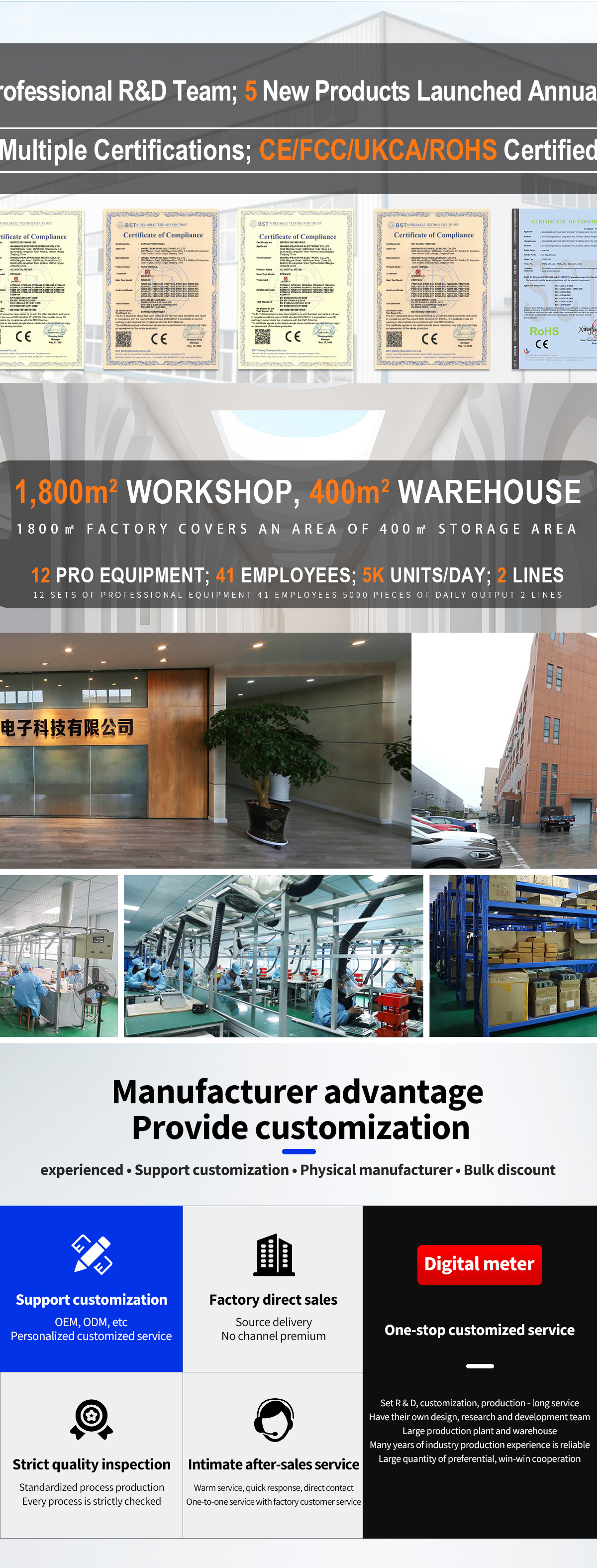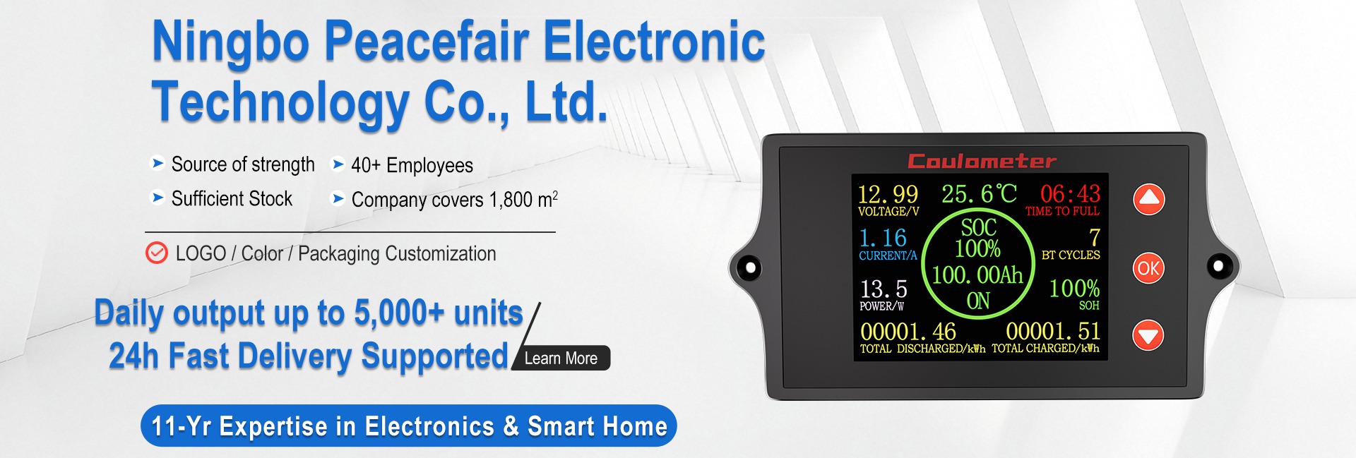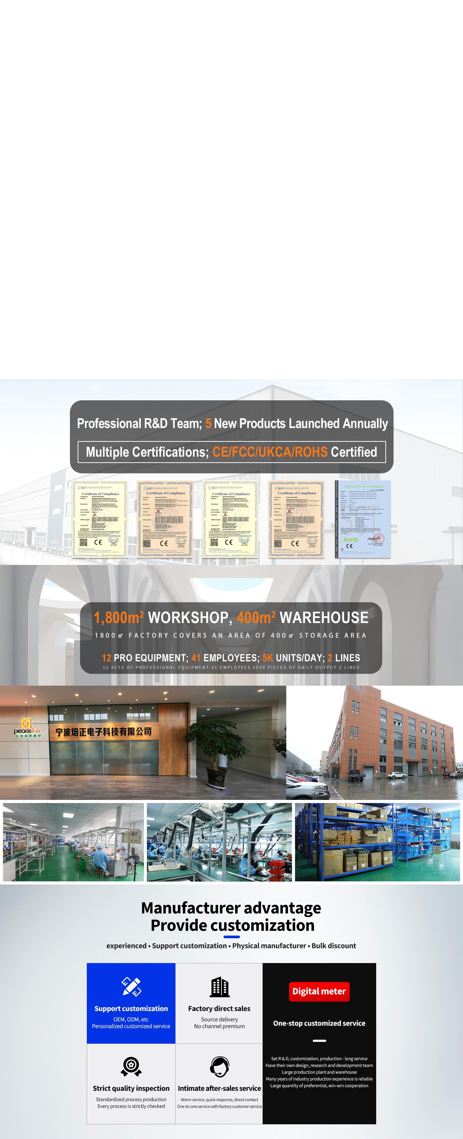 Ningbo Peacefair Electronic Technology Co., Ltd. is founded in 2 0 1 4, it is located in Ningbo. The area of the factory is 1800 square meters, has two assembly line. We are a professional manufacturer engaged in the research, development, production, sale and service of AC and DC Electric digital power meter, Voltage meter and Energy meter. Our products have the patent and C E, F C C certificates.